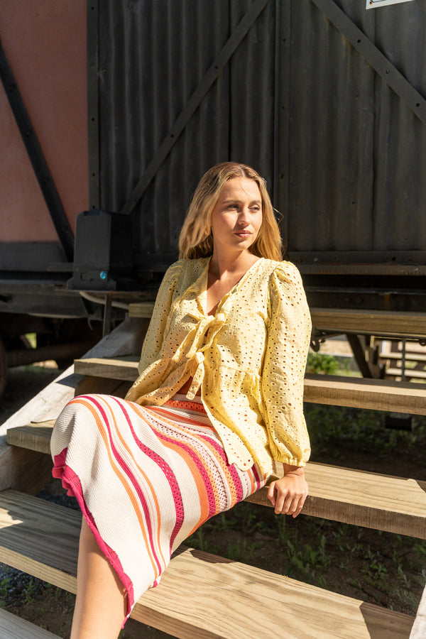 Esta camisa combina detalles actuales con una silueta cómoda y femenina. Las mangas globo aportan volumen y sofisticación, mientras que los lazos en el frente ofrece un detalle sutil y adaptable que realza el look.