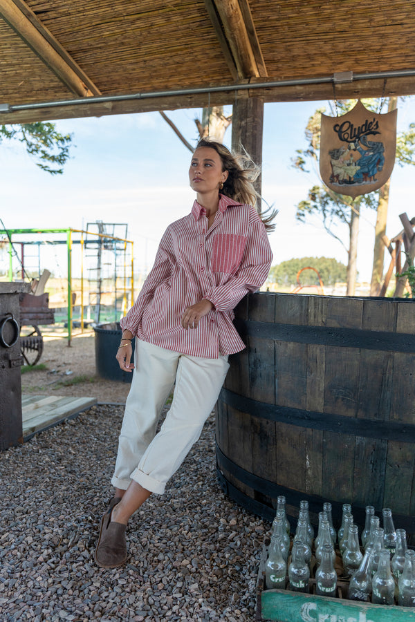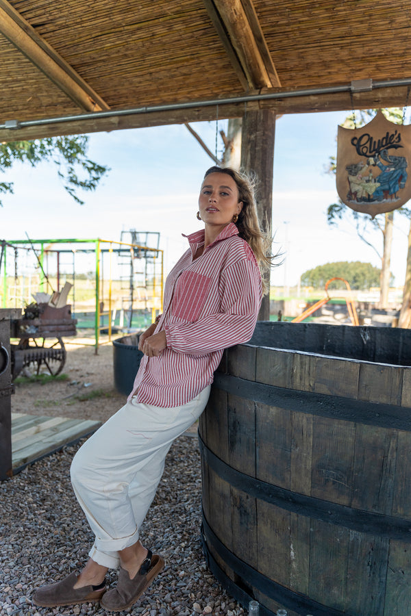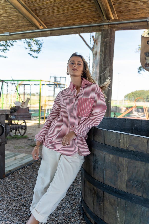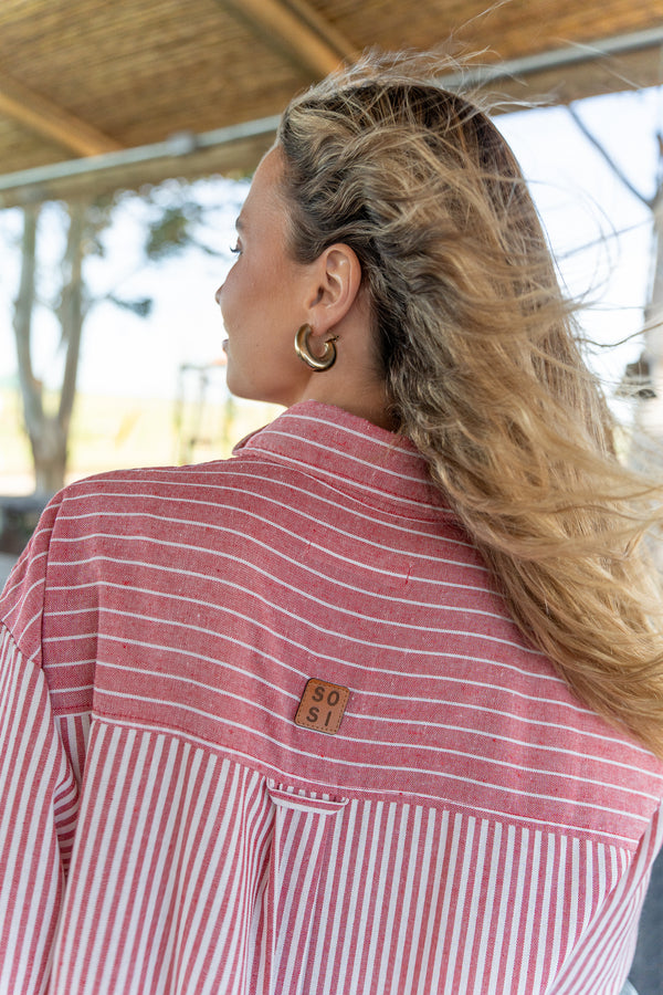 Nuestra camisa se destaca por combinar dos tipos de rayas diferentes que le aportan un detalle único dándole dinamismo y personalidad. Confeccionada en lino, una tela liviana y fresca, ofrece comodidad ideal para los días cálidos.