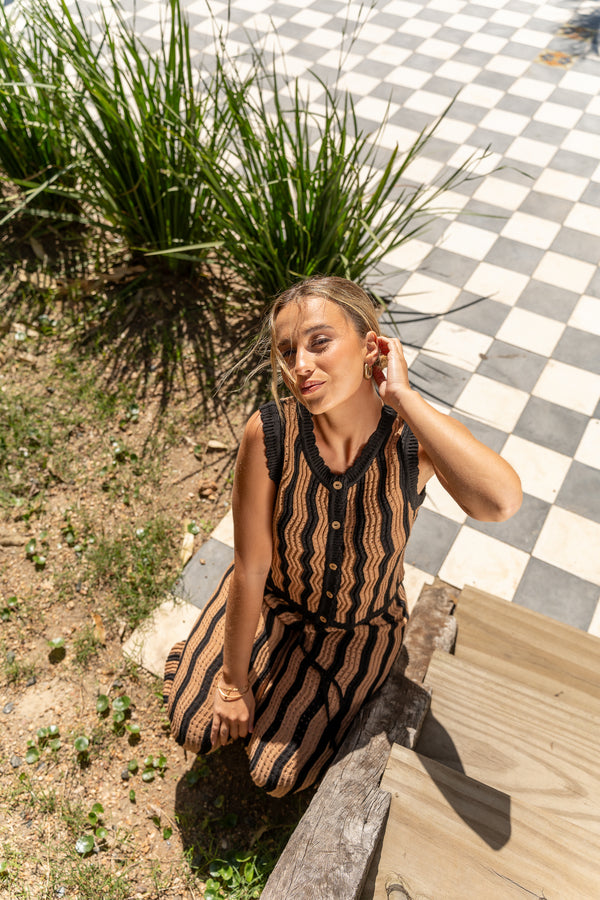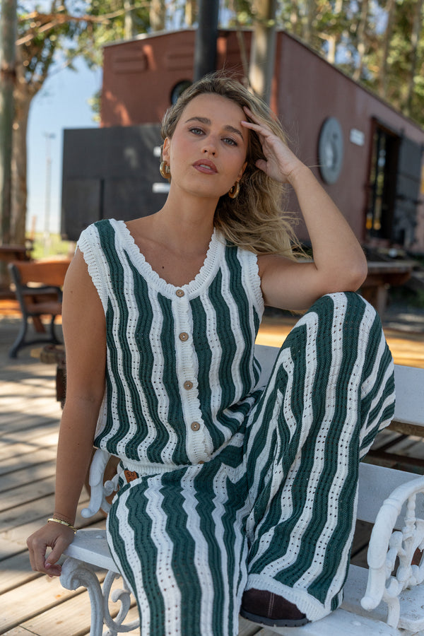 Dale un giro a tu look y anímate a este conjunto tejido, compuesto por nuestro chaleco Felicia y pantalón paraíso combinados en dos colores que crean el equilibrio perfecto entre estilo y comodidad.