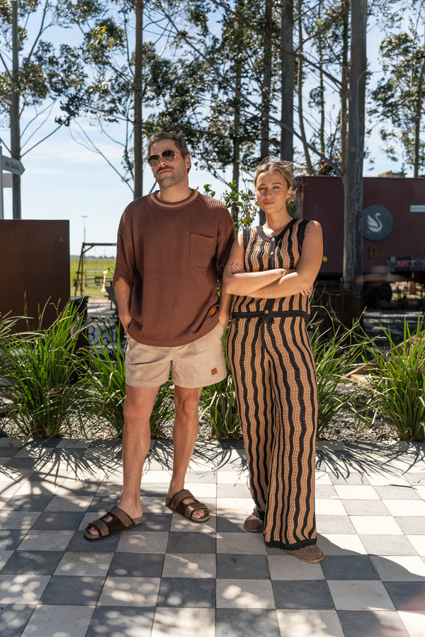 Dale un giro a tu look y anímate a este conjunto tejido, compuesto por nuestro top Felicia y pantalón paraíso combinados en dos colores que crean el equilibrio perfecto entre estilo y comodidad.
